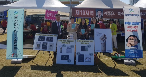 마약없는 밝은 부산을 주제로 하는 입장식 이후에 마약퇴치 기금을 전달하고 마약퇴치운동본부의 캠페인 부스를 설치, 다양한 홍보사업의 결과물을 전시하고 사업 전반에 대한 홍보를 할 수 있는 자리가 마련 됐습니다.