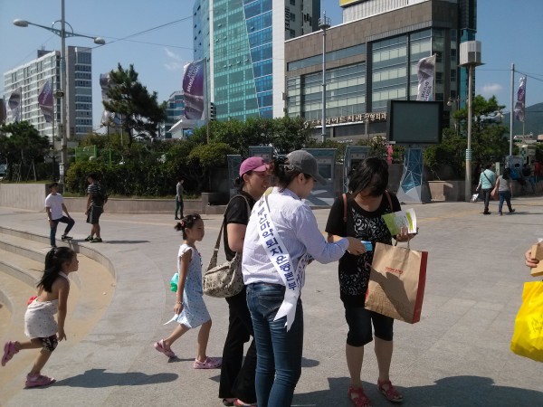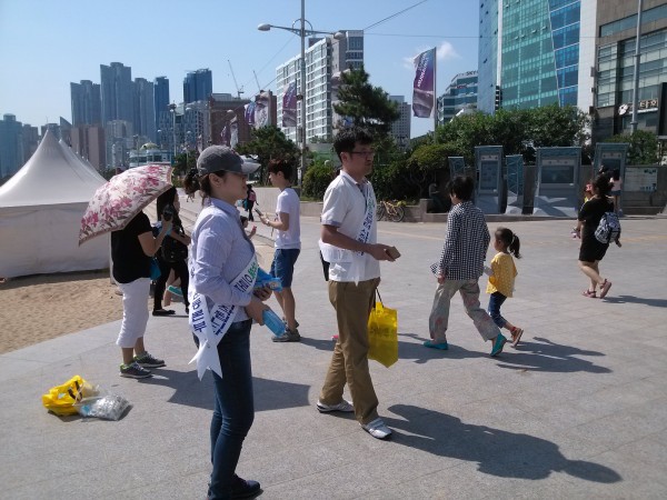 생명존중 문화제 "허들링"행사와 연계하여 해운대 해수욕장을 찾은 시민들을 대상으로 해운대