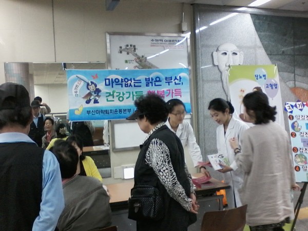 내 용 : 불법마약류 퇴치 캠페인의 효과성을 극대화 하기 위하여 수영 지하철역을 이용하는 시민들을 댓항으로 유관단체 및 보건소 직원 등 참여하여 홍보물품 및 리플릿 등를 배부하며 마약의 폐해와 심각성을 알리는 계기로 불법마약류 퇴치 캠페인을 실시함.