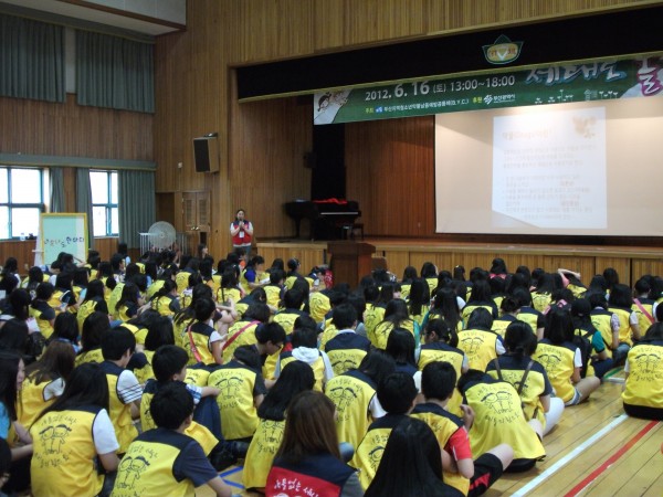 내용 : 부산지역 초중고생 400여명이 참석하여 약물오남용 예방교육, 참여마당, 상담부스, 약물골든벨 및 무대공연, 거리홍보를 함. 참여마당에서는 약물유해 체험 및 약물유해버튼만들기, 페이스페인팅, 돌림판게임 등을 실시하였고, 상담부스에서는 알코올남용 진단검사, 진로 심리검사, 인터넷중독 및 우울, 자살에 관련한 상담을 실시함. 거리홍보는 덕천초등학교에서 덕천동까지 가두행진으로 진행되었으며, 시민들에게 홍보물품 배부함.