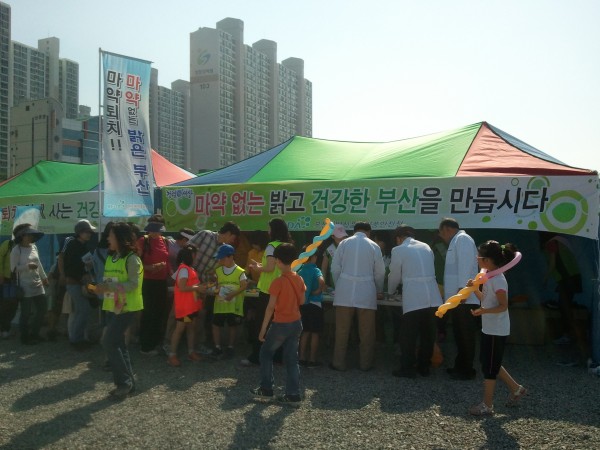 자 등 30여명이 나누어 각 부스를 찾아다니며 마라톤 참가자와 가족등 20,000여명을 대상으로 호오물품 및 전단지 등을 배부하며 캠페인을 실시함. 또한 부산식약청 일부 직원은 마라톤에 직접 참가하여 뛰면서 홍보활동에 적극 동참을 하였슴.
