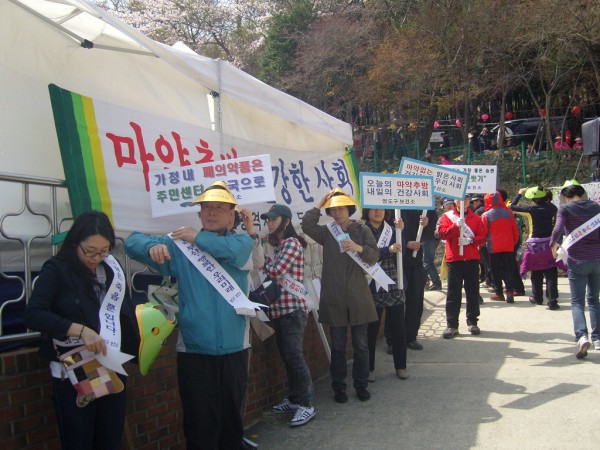 참여로 청학 벚꽃축제장을 찾은 시민들을 대상으로 마약퇴치 캠페인을 실시하였음.