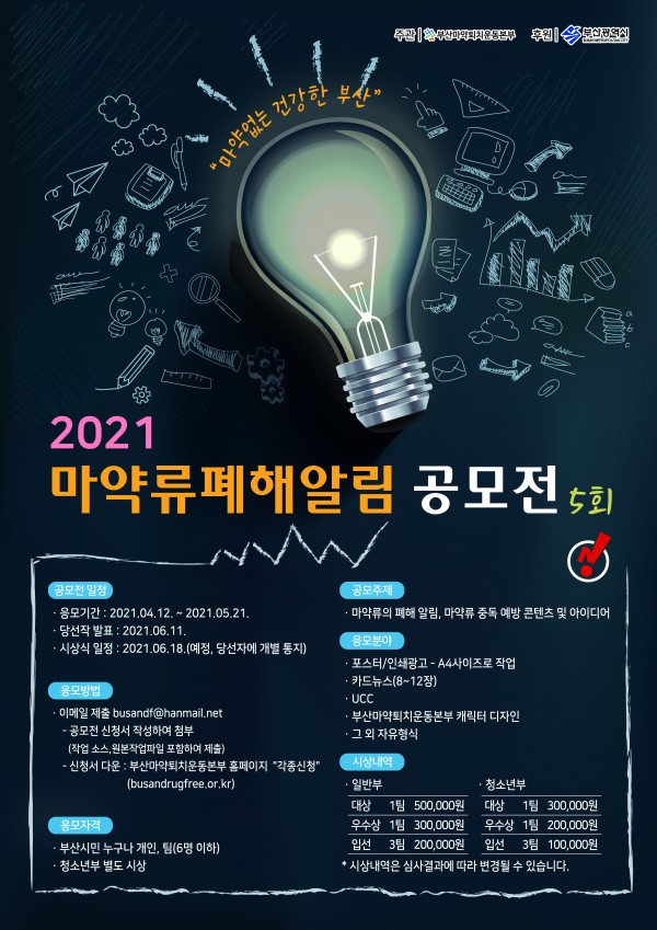 2021년 부산마약퇴치 콘텐츠 공모전을 실시합니다.