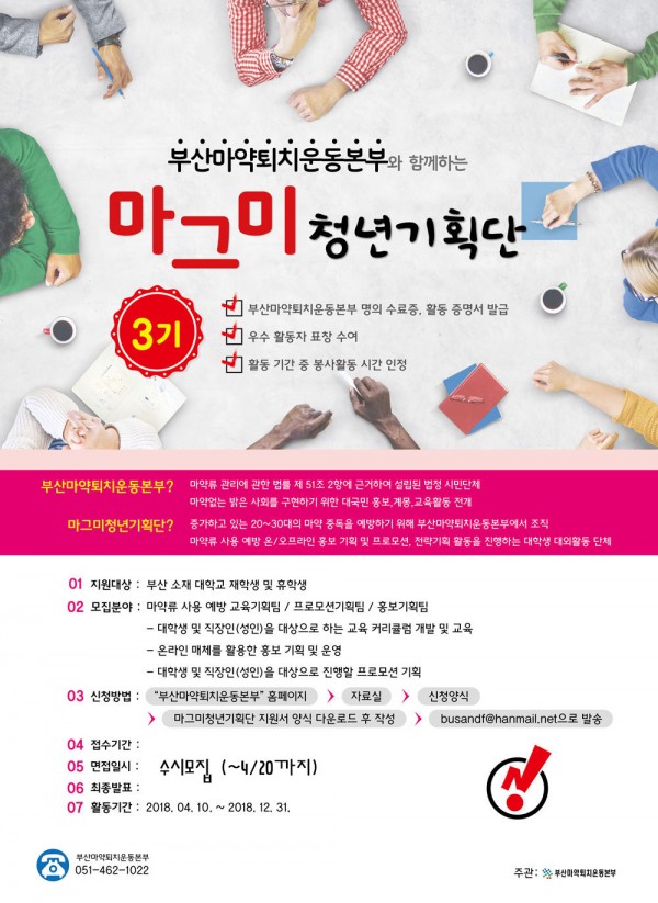 증가하고 있는 20~30대 마약류 사용을 예방하기 위해 부산마약퇴치운동본부에서 조직한 단체로