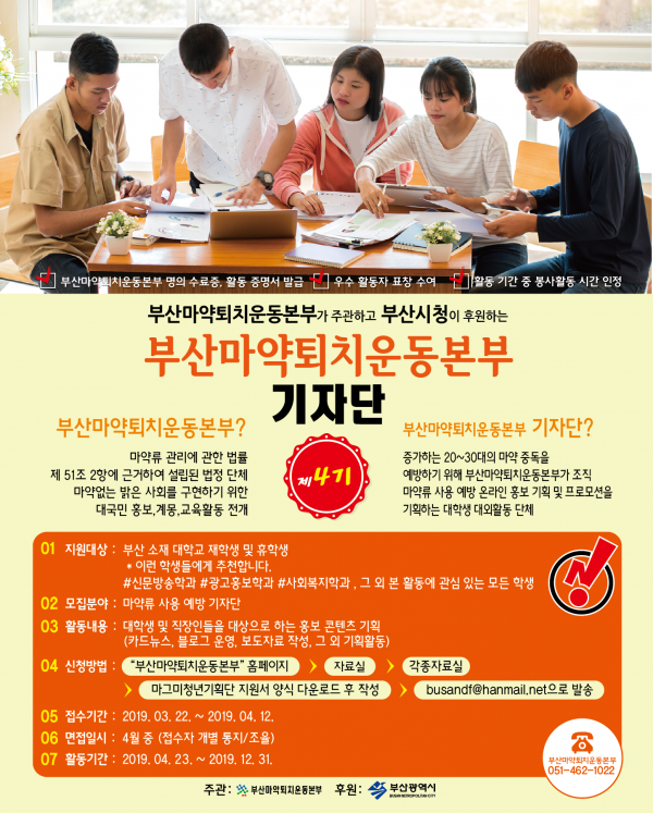 2019년 부산마약퇴치운동본부 기자단(4기)에 관심 가져주셔서 감사합니다 ^^